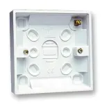 Boîtier d'encastrement 1 poste PRO ELEC (32mm) ignifuge pour montage en surface. Conforme BS5733, idéal pour goulottes.