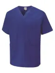 Tuncó Scrub uilíoch Uneek i ngorm ríoga do ghairmithe sláinte. Deartha le compord, marthanacht & cuma ghairmiúil.