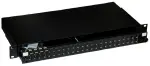 לוח חיבורים סיבים אופטיים Connectix 24 יציאות בתצורת 1U, עיצוב הזזה, פלדה קלה עם ציפוי שחור, אידיאלי למרכזי נתונים.