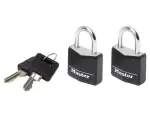 מנעול אלומיניום עם ציפוי ויניל שחור של Master Lock, כולל 2 מפתחות. לולאת פלדה מוקשה וצילינדר 3 פינים.