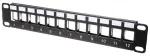פאנל חיבורים TUK מיני מדיה עם 12 פורטים, תומך ב-UTP ו-FTP, אידיאלי לארונות 10 אינץ' ולרשתות ביתיות/משרדיות.