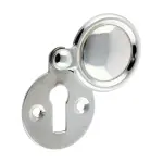 זוגת מגן מפתחות מסורתית של Timco מנחושת מוצקה בגימור כרום מלוטש, מתאימה לדלתות עץ פנימיות וחיצוניות, כוללת מגן פתוח ומגן פרטיות עם כיסוי סובב.