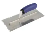 Spatola per adesivo Vitrex in acciaio inox con dentatura quadrata 4mm, ideale per la distribuzione uniforme di colla. Resistente e confortevole.