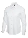 Camicia donna in popeline Uneek, bianca, manica lunga. Tessuto resistente e facile da curare, perfetta per lavoro e occasioni casual.