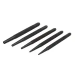 Set di 5 punzoni per chiodi Silverline (1,5-5mm) in acciaio temprato, con presa zigrinata e finitura annerita. Ideale per lavori di falegnameria e fai-da-te.