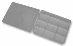 HiLo 8コンパートメントクリア収納ボックスは小型アイテム整理に最適。8区画で文房具・工具などを分類、ヒンジ式蓋付きPP製。