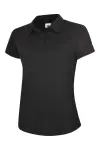 Uneekのレディースワークウェアポロシャツ(ブラック)。吸湿速乾機能で快適、耐久性抜群のオフィス&作業用シャツ。