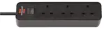 BRENNENSTUHL製3口接地付き延長コード(1.5m)。UK規格準拠、点灯式スイッチ付きで家庭・オフィス・作業場に最適。