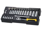 Modul soket metrik STANLEY 3/8in dengan 36 keping alat. Termasuk soket standard, dalam, dan torx untuk pelbagai kerja.
