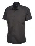 Kemeja lengan pendek poplin lelaki Uneek (65% poliester, 35% kapas). Warna biru kelasi, saiz 17, selesa dan mudah dijaga.