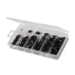 Fixman pek cincin luar (circlips) 64 keping, keluli bersalut hitam, sesuai untuk pelbagai saiz aci dari 6-25mm.