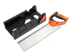 Kotak Miter Plastik Pony Jorgensen dengan gergaji 14 inci. Sesuai untuk pemotongan miter pada sudut 45° & 90°.