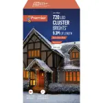 Lampu Krismas Cluster 720 LED Premier dengan pemasa auto, sesuai untuk hiasan dalaman & luaran. Pelbagai fungsi & jimat tenaga.
