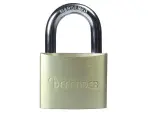 Kunci paku aluminium DEFENDER (50mm) dengan shackle keluli dikeraskan dan badan brass. Sesuai untuk gudang, garaj dan kotak besar.