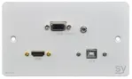 Stijlvolle SY ELECTRONICS 2-voudige HDMI wandplaat (VGA & USB) voor netjes kabelbeheer in kantoren en onderwijs.