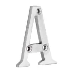 Litera drzwiowa Timco A w wykończeniu satynowy chrom. Mosiężna, odporna na korozję, idealna do drzwi wewnętrznych i zewnętrznych oraz numeracji domów.