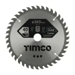 Timco 165mm cordless circular saw blade with 40 teeth for clean cuts in timber and man-made boards.