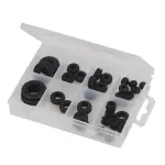 Kit profissional Fixman com 35 buchas de borracha anti-vibração para proteção de cabos e tubos em painéis metálicos.
