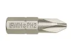 Bits de inserção IRWIN Phillips PH2 em aço S2 resistente, ideal para aperto manual e elétrico. Embalagem de 10 unidades.