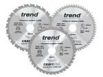 Pack de lâminas de serra CraftPro da Trend com 3 lâminas (24T/40T/60T) para cortes precisos em vários materiais.