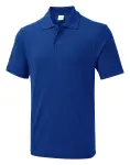 Polo Unissexo UX da Uneek em 50% poliéster e algodão, cor Royal. Estilo, conforto e durabilidade para um guarda-roupa versátil.