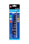 Blue Spot Tools专业级9件套筒组,铬钼钢制造,低高度设计,适用于狭小空间和电动工具,包含6-19mm尺寸,带存储轨。