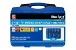 Blue Spot Tools专业级9件套铬钼钢深冲击套筒组,覆盖29-39mm公制尺寸,专为高强度作业设计,带便携工具箱