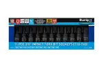 Blue Spot Tools 11件3/8英寸强力梅花起子头组(T10-T60),铬钒钢制造,热处理S2合金钢起子头,48毫米深度套筒,专为高扭矩作业设计。