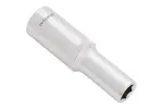 专业级铬钒钢加长六角套筒,94牛米高扭矩,适配1/2英寸工具,适用于汽车维修/工业作业。镜面抛光防锈,滚花防滑设计。