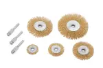 Blue Spot Tools5件套镀黄铜钢丝轮刷套装,含3种规格轴杆,专业级去锈除尘效果,适用于汽车翻新、机械维修等多种场景。