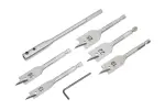 Blue Spot Tools 7件100毫米短柄六角木工钻头套装,热处理碳钢制造,适合木材和MDF加工,附带150mm延长杆和2.5mm六角扳手。