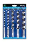 专业级Blue Spot Tools 5件套碳钢螺旋钻头,含10-25mm规格。六角防滑柄设计,适合木工/管道/电缆安装,实现无毛刺精密钻孔。