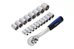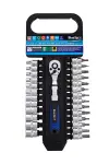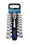 Blue Spot Tools 19件套铬钒钢套筒组,含72齿棘轮扳手,适合汽车和机械维修,提供耐用收纳架和专业性能。