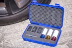 Blue Spot Tools专业7件套½英寸轮毂螺母冲击套筒组,铬钼钢材质,尺寸17/19/21mm,带有颜色编码保护套,适合专业和家庭使用。