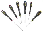 STANLEY FatMax 6件套精密螺丝刀,铬钒钢刀杆,高扭矩,人体工学软握柄,适用于电子设备、家具组装及设备维修。