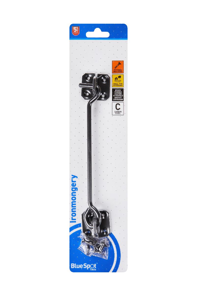 Blue Spot Tools碳钢舱门钩,204mm黑色粉末涂层防锈,适用于户外门和栅栏固定,配套齐全安装配件。