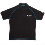 Makita品牌100%棉黑色馬球衫,大碼尺寸,前後繡有品牌標誌。適合工作場合及日常穿著,展現專業形象。