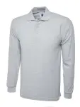 Uneek品牌高品質長袖Polo衫,混合50%棉和50%聚酯纖維,石灰色XL尺碼。針織領和平整袖口設計,舒適耐穿。