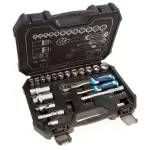 Eclipse ESS25PS套筒扳手套裝包含12個鉻釩鋼套筒和多種配件,適用於汽車維修、家具組裝及各種DIY項目。