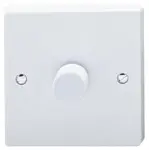 CRABTREE 1組2路250W白色調光開關,專為鎢絲燈泡設計,符合國際安全標準,安裝簡便,適用於家庭和商業場所。