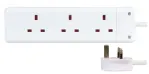PRO ELEC 白色3位拖板,1米線長,符合英國BS 1363/A標準,13A額定電流,適合家庭和辦公室使用。