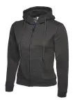 Uneek 女士經典連帽拉鏈衞衣,50%棉混紡,炭灰色2XL碼。刷毛內層舒適溫暖,萊卡羅紋袖口,適合日常休閒運動穿著。