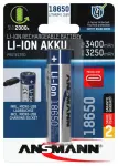 ANSMANN 3.6V 3400mAh 18650鋰離子電池,配Micro USB充電功能,適用於手電筒、頭燈及激光筆,內置安全保護電路。