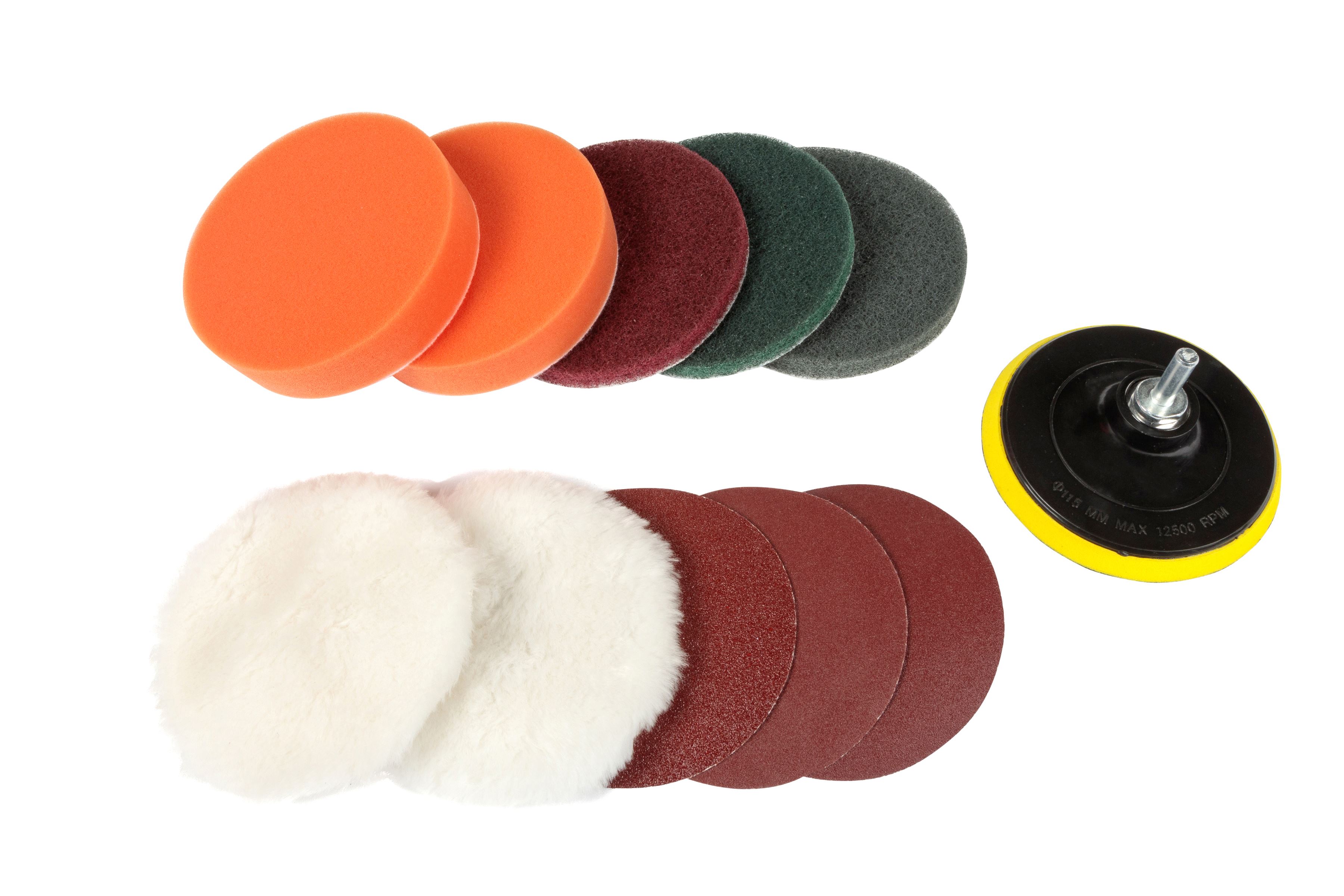 Blue Spot Tools專業12件式拋光打磨套裝,含8種高品質配件,適用汽車翻新、木工等精細表面處理工作。