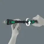 Wera 8000 A黑色限量版棘輪扳手配備旋轉頭設計72齒機構,適用狹窄空間。兼容標準1/4''套筒。專業高效維修工具首選。